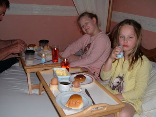 Vorig weekend zijn onze kleinkinderen Sanne en Kim bij ons wezen logeren. Ze hadden al een poos geleden gevraagd of ze ontbijt op bed mochten verzorgen voor ons. Het ontbijt leek ons wel wat maar het klaar maken niet. daar zijn ze nog te jong voor. Daarom heb ik zelf(oma)maar meegeholpen.